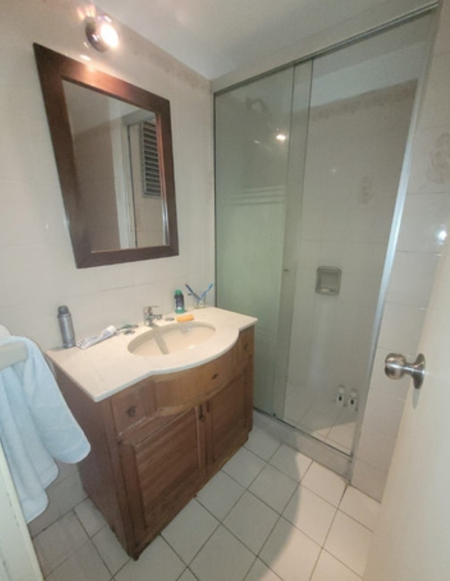BAÑO SOCIAL COMPLETO CON MAMPARA DE CRISTAL.