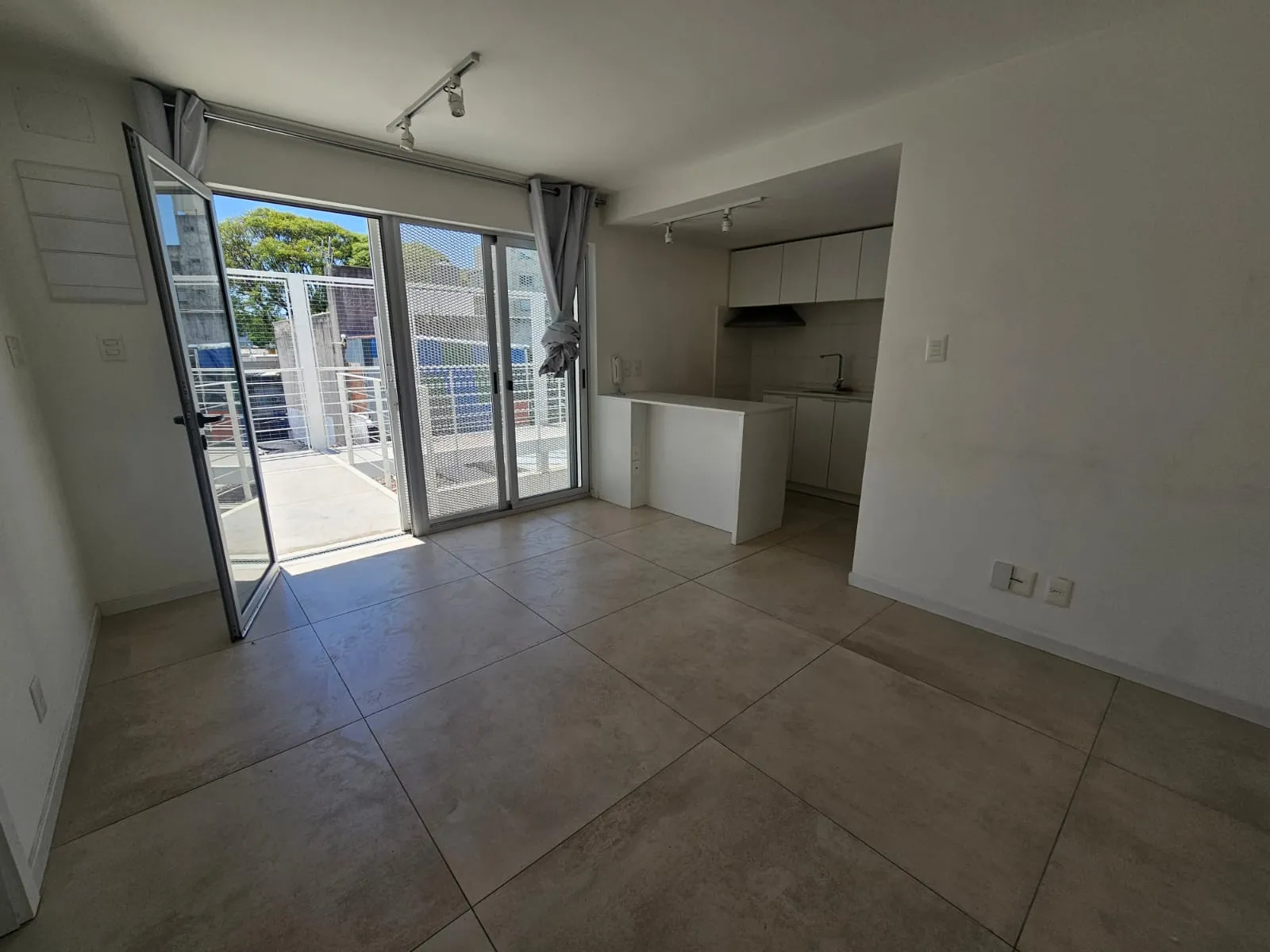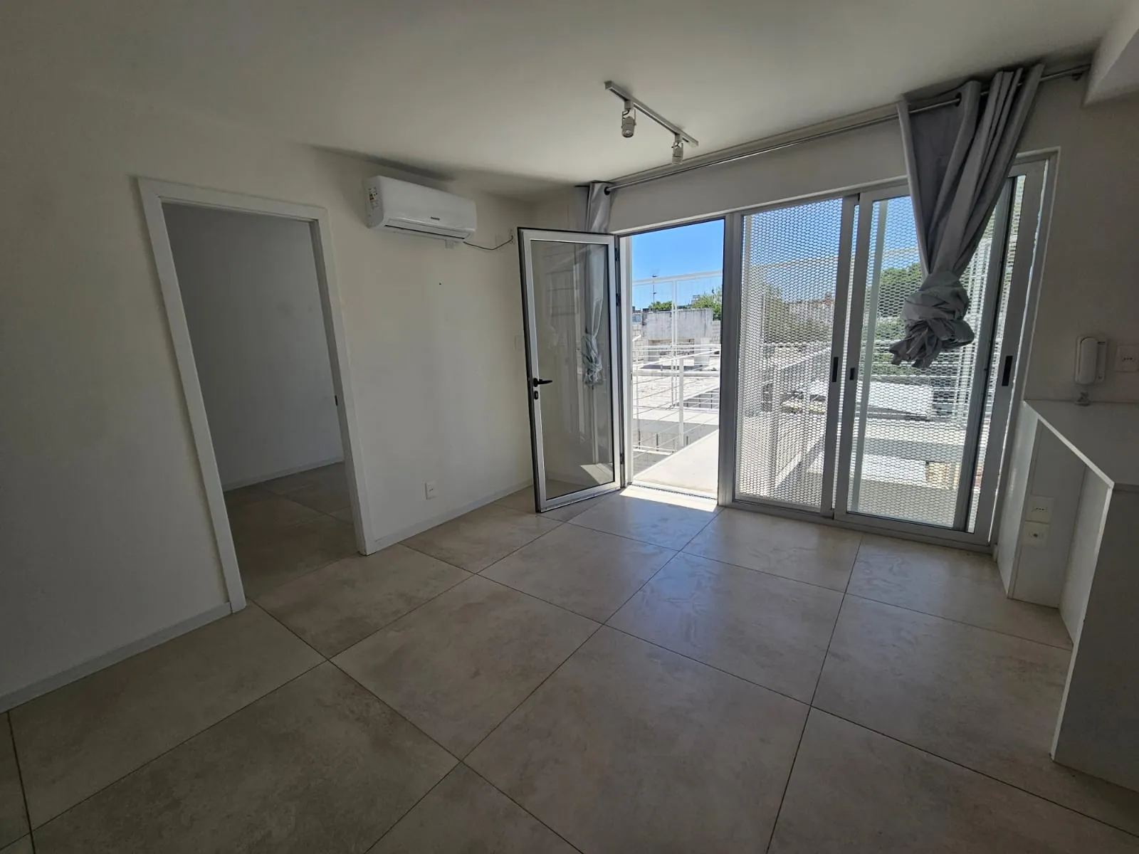 Este apartamento ofrece una superficie cómoda y funcional, distribuida en un dormitorio, un baño y una cocina integrada al espacio principal. El ambiente principal cuenta con aire acondicionado y se destaca por su conexión con el exterior mediante amplios ventanales y acceso directo a un balcón, lo que aporta luminosidad y ventilación natural.