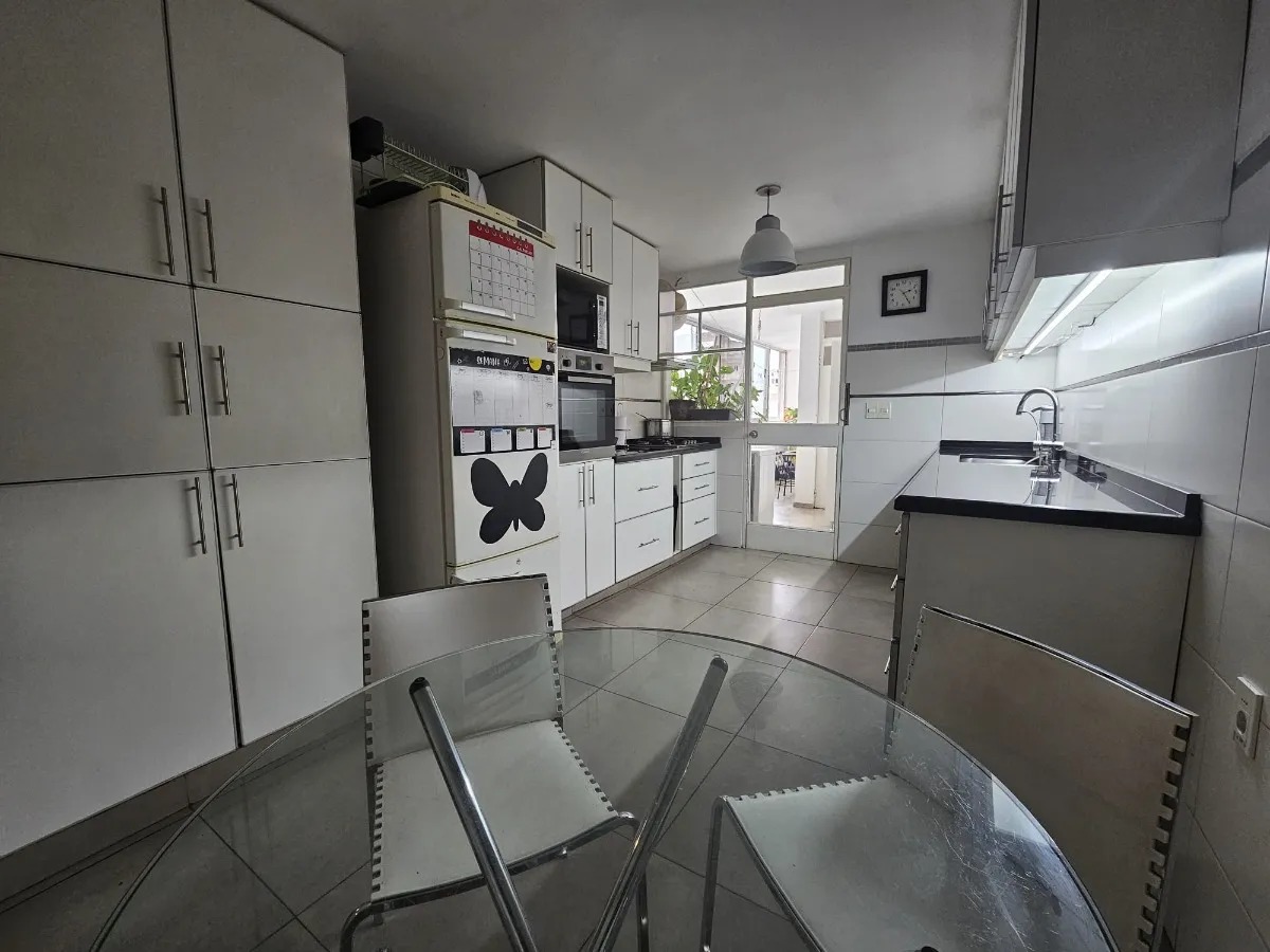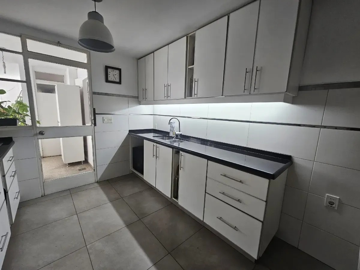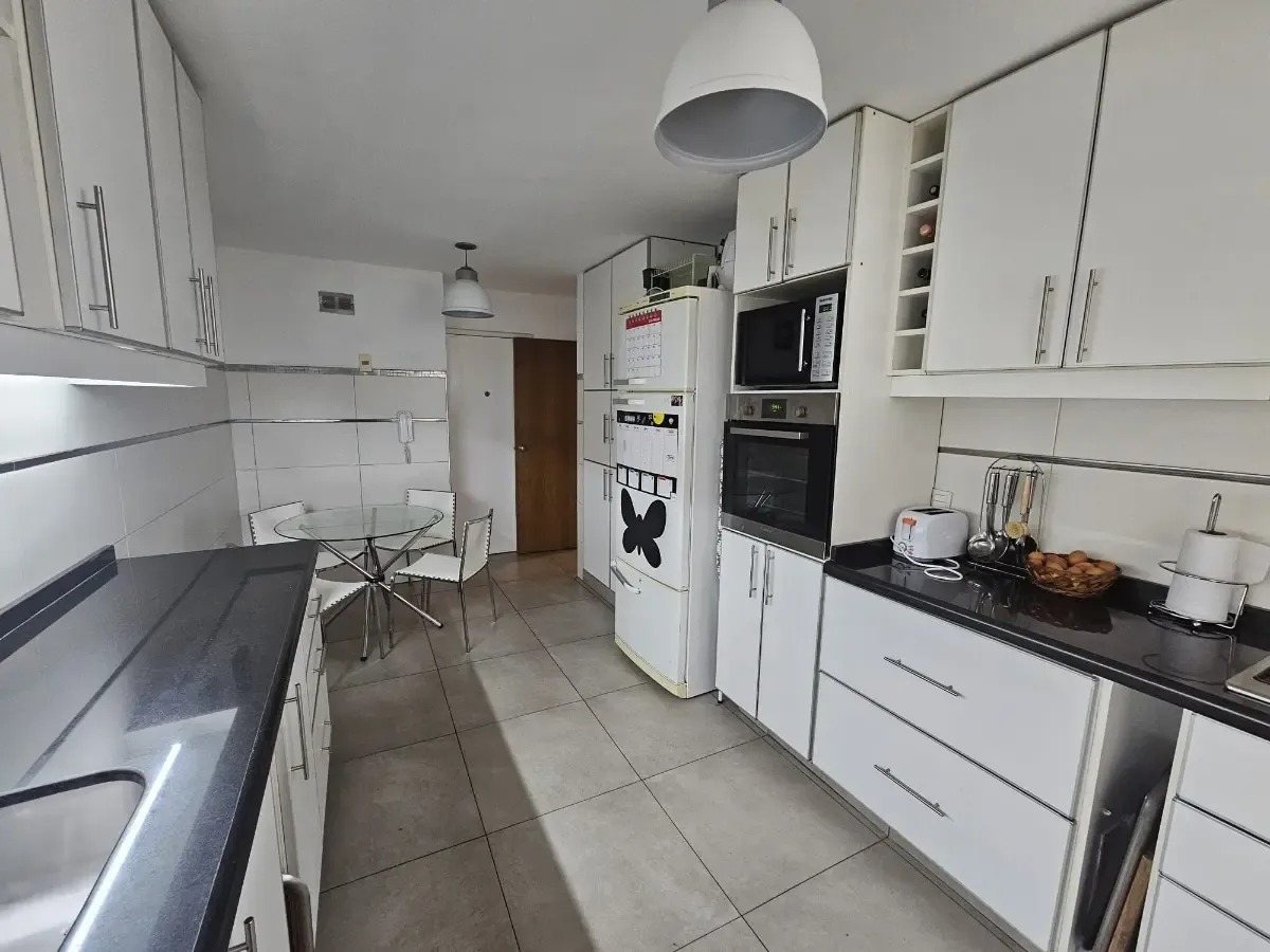 Amplia cocina definida, equipada con placares sobre y bajo mesada, con salida a terraza lavadero y conexión directa al área de servicio.
