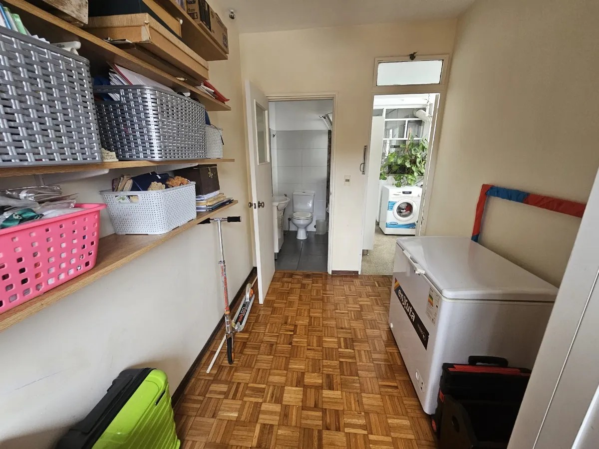 Pisos de parquet en excelente estado en los ambientes principales, aportando calidez y elegancia.